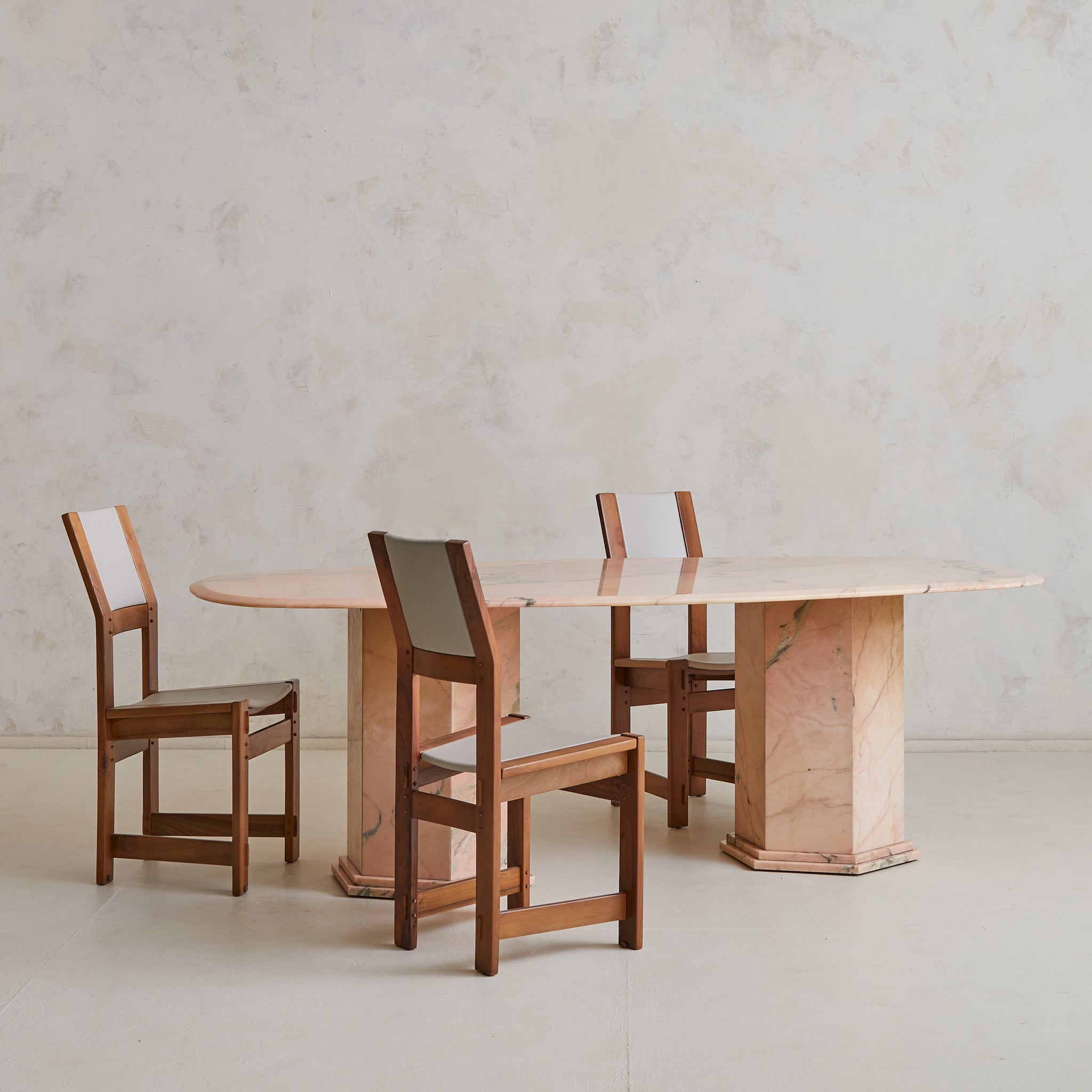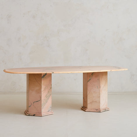 Italian Pink Portuguese Marble Oblong Dining Table with Pedestal Bases, 1970s