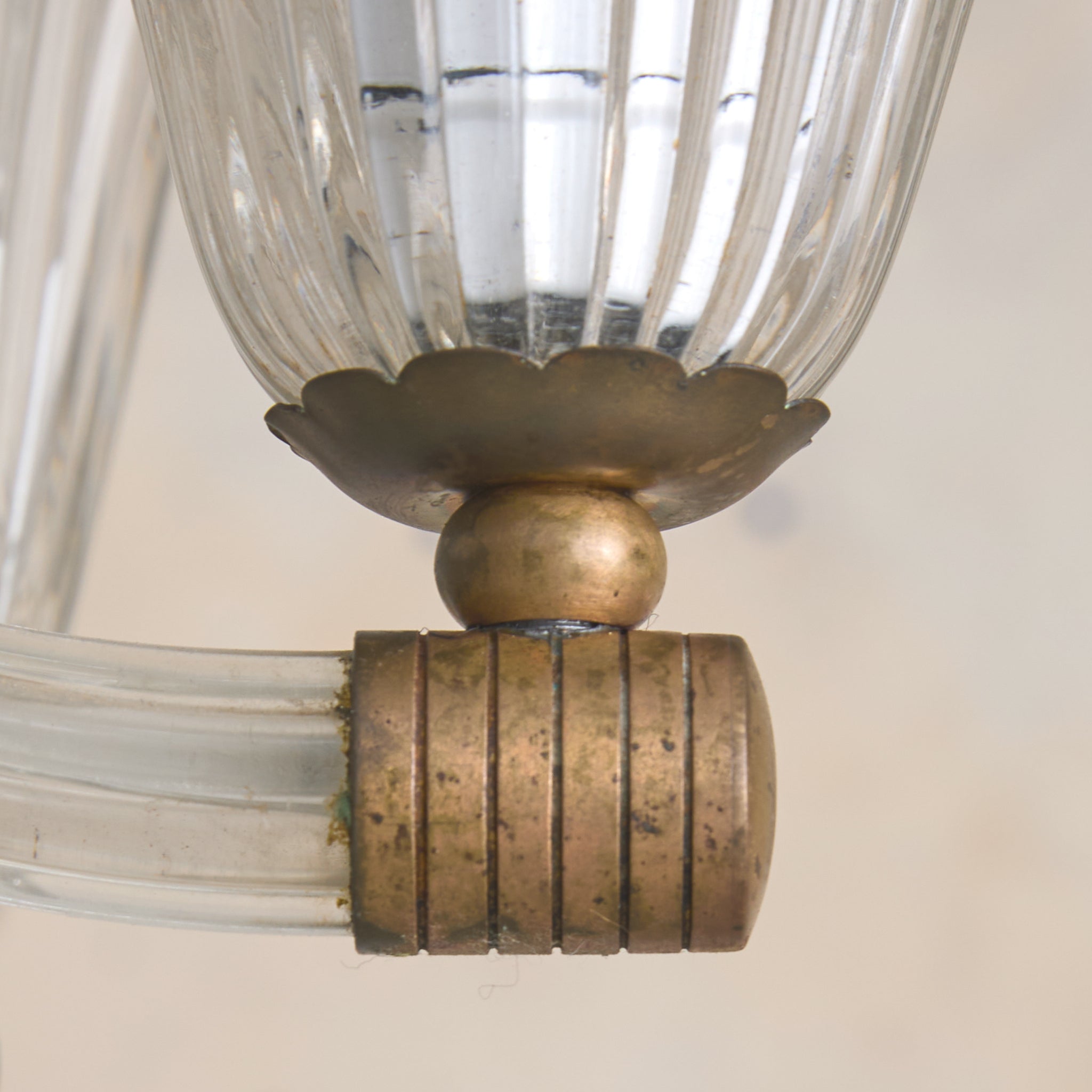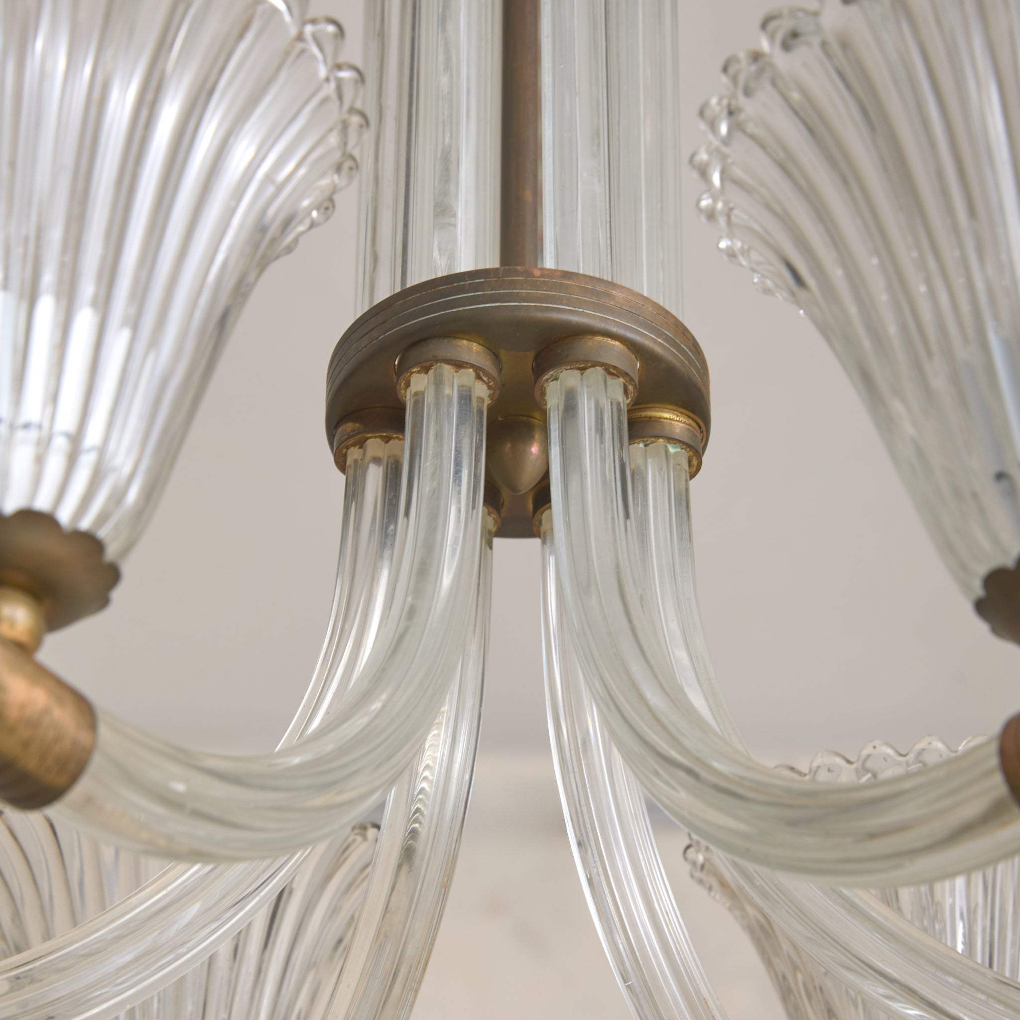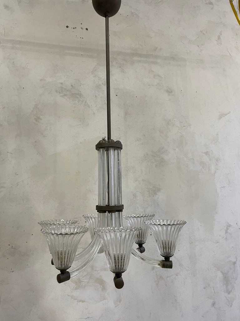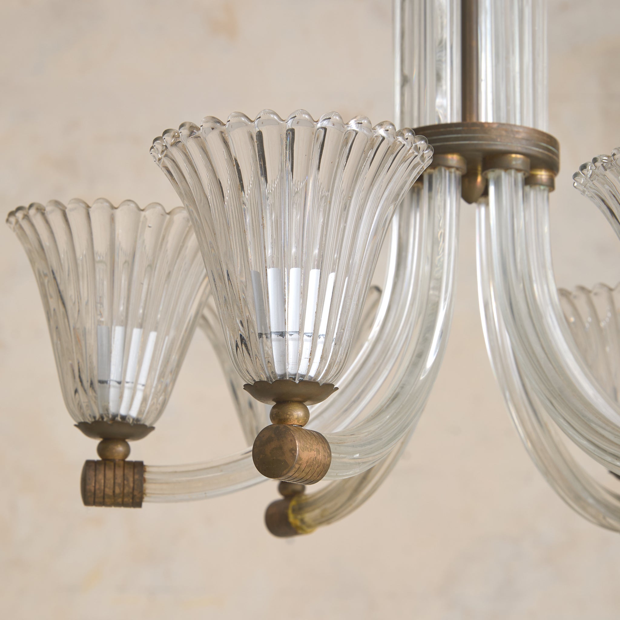 Italian Six-Arm Murano Glass Chandelier Attributed to Barovier & Toso, 1940s