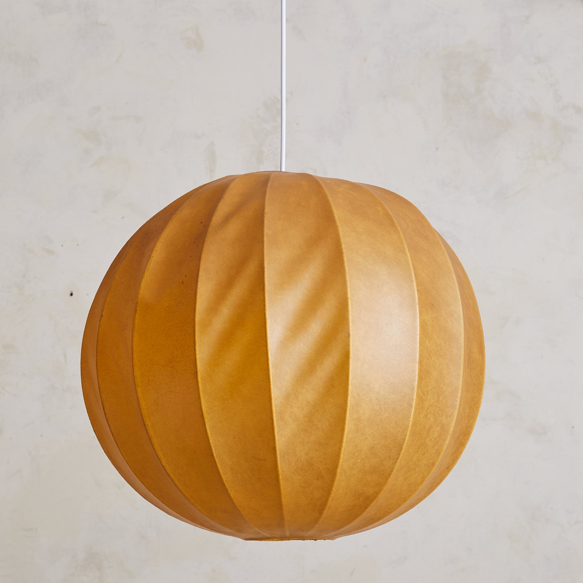 Italian Spherical Ochre Cocoon Pendant Light, 1960s