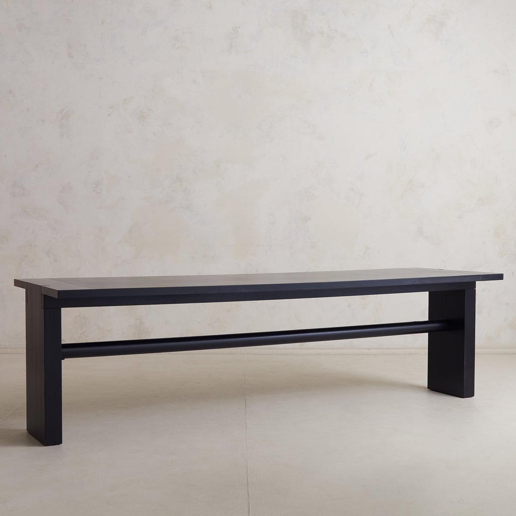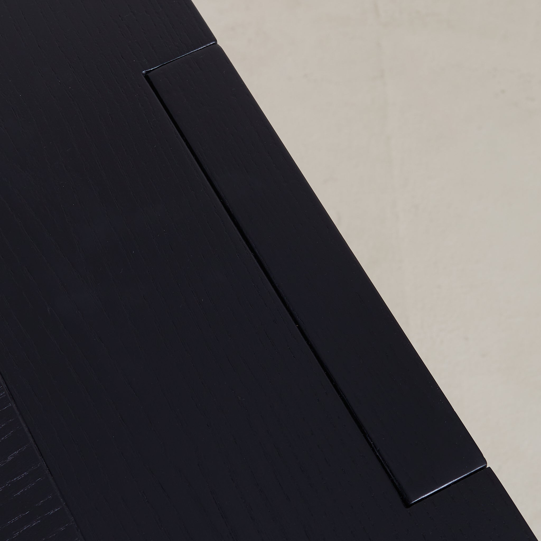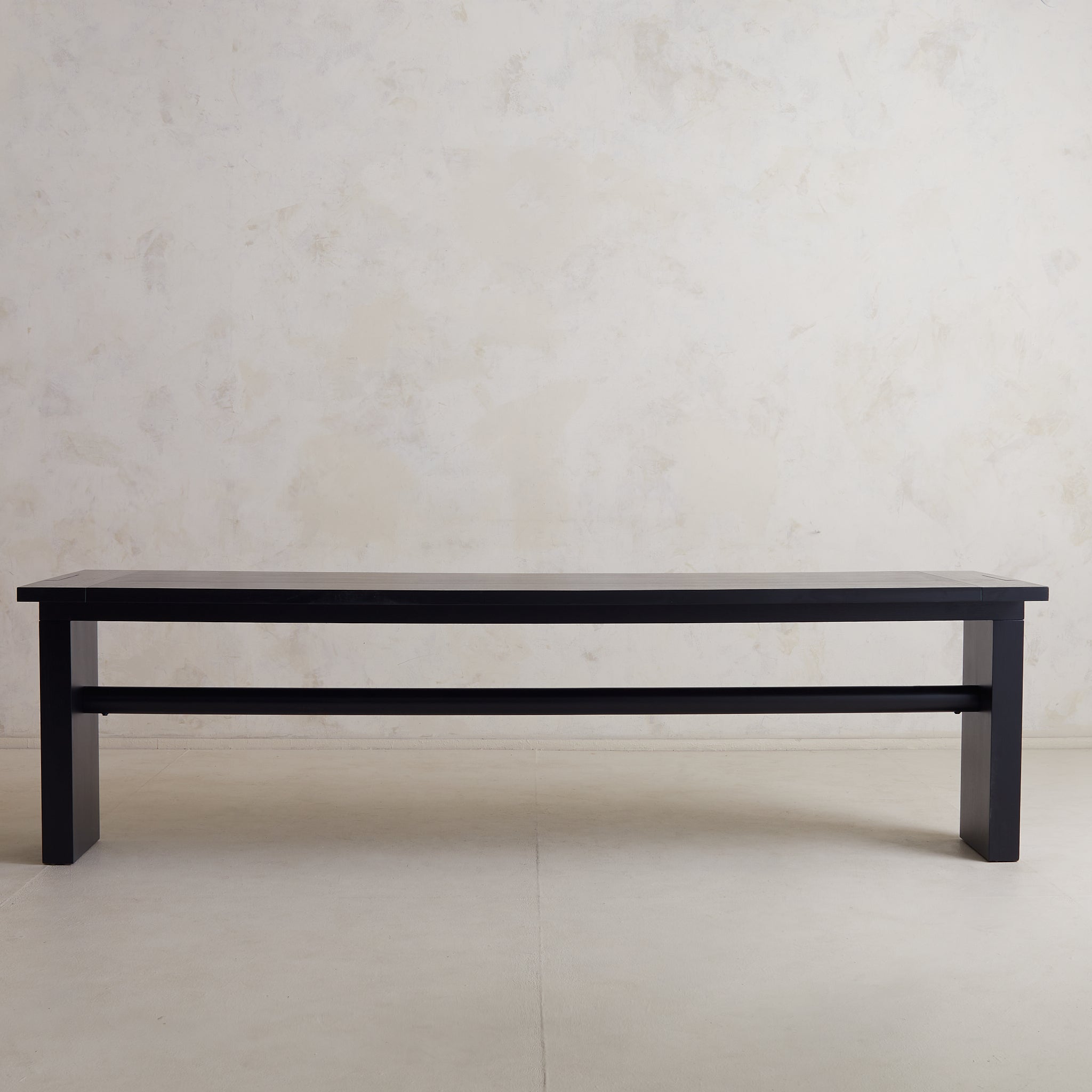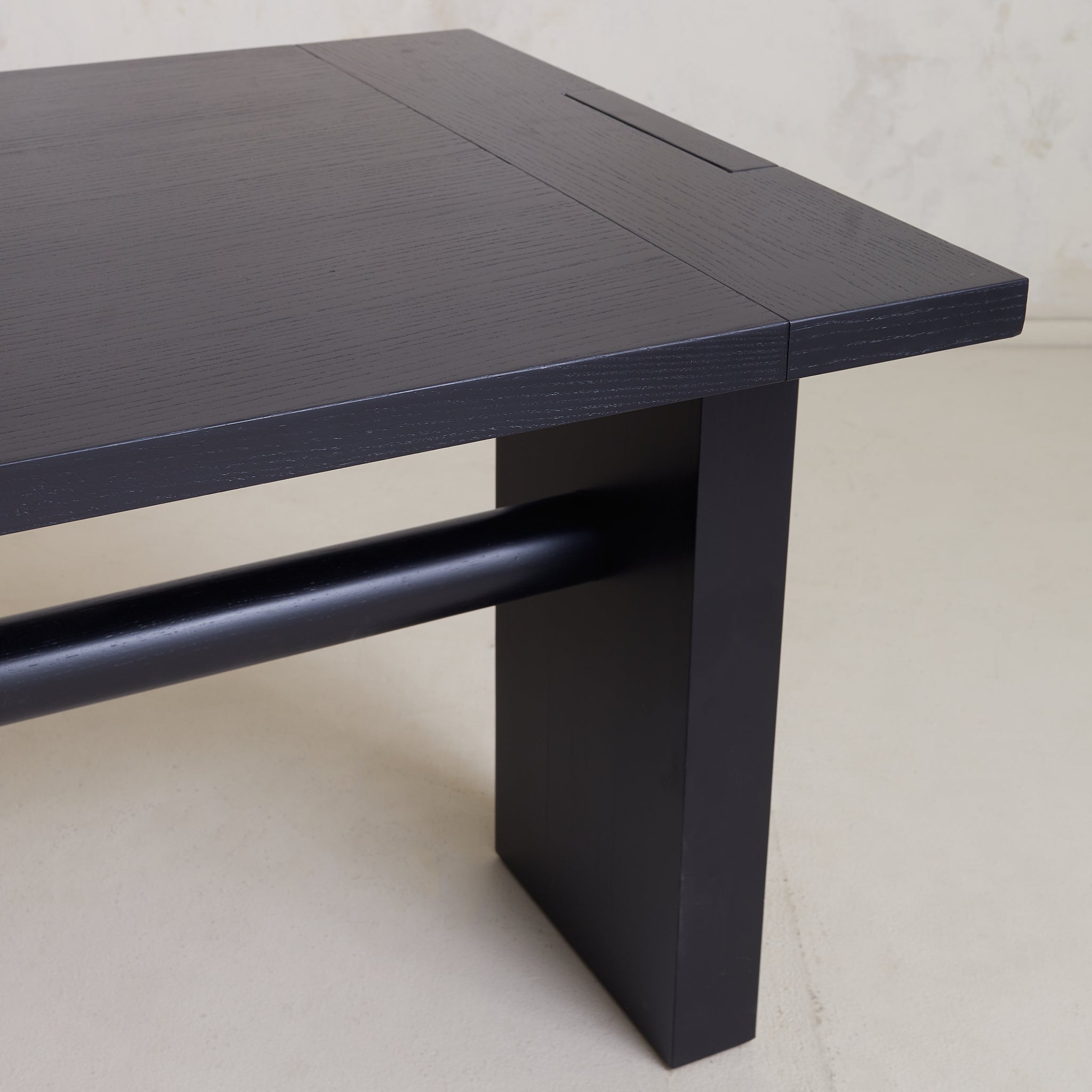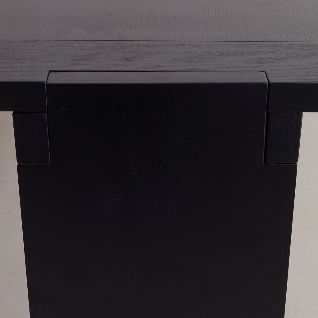 Its name references Villa Valmarana, the Palladian estate near Vicenza, and Scarpa’s sensitivity to classical proportion is evident. Crafted of wood in a rich ebony finish, it features a well-proportioned rectangular top resting on two monolithic pedestal bases. Each base is formed from stacked geometric planes.