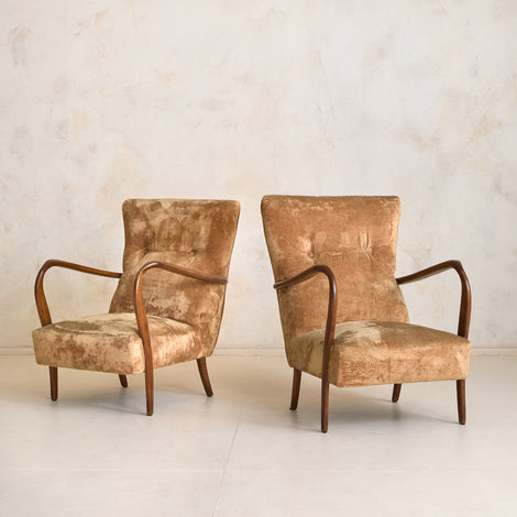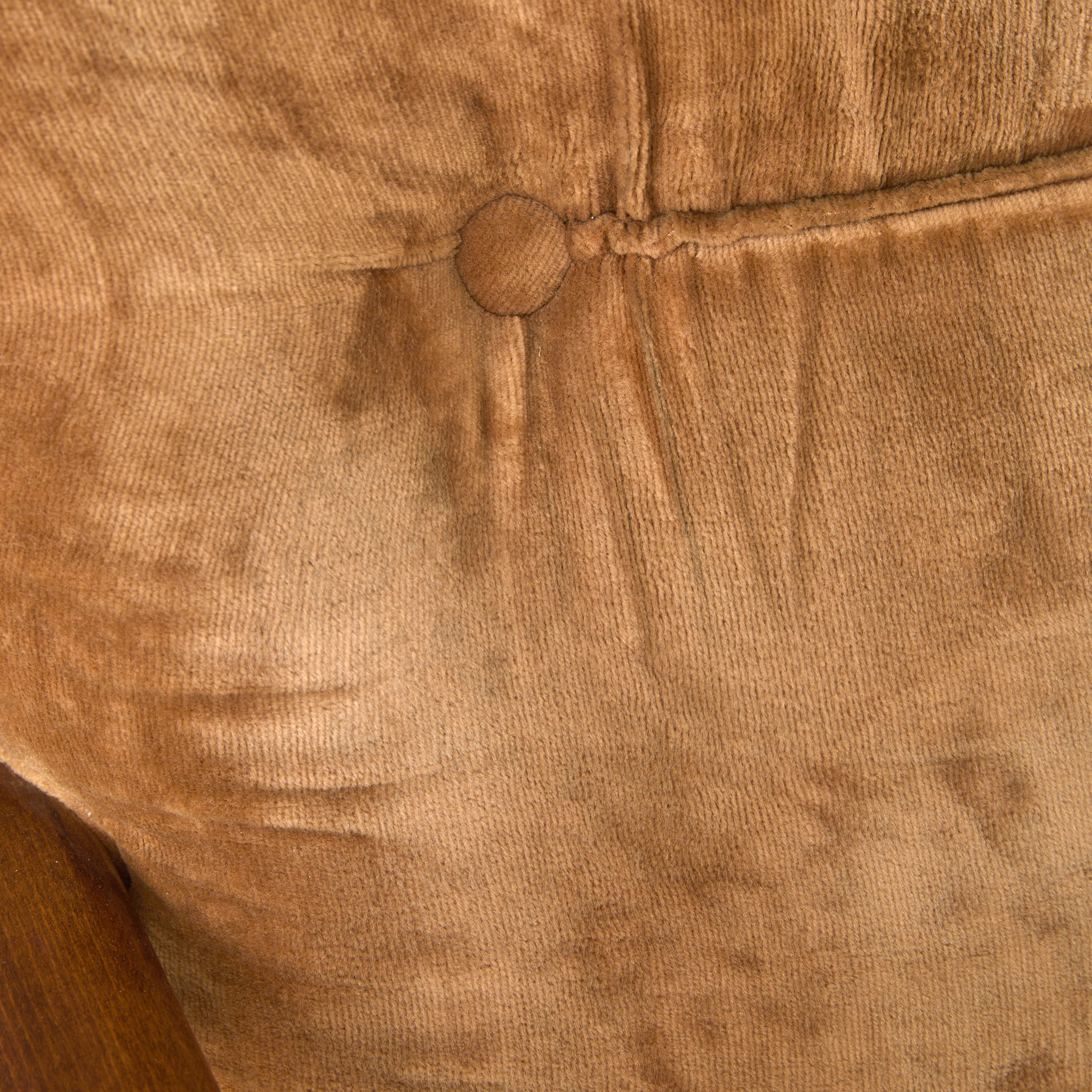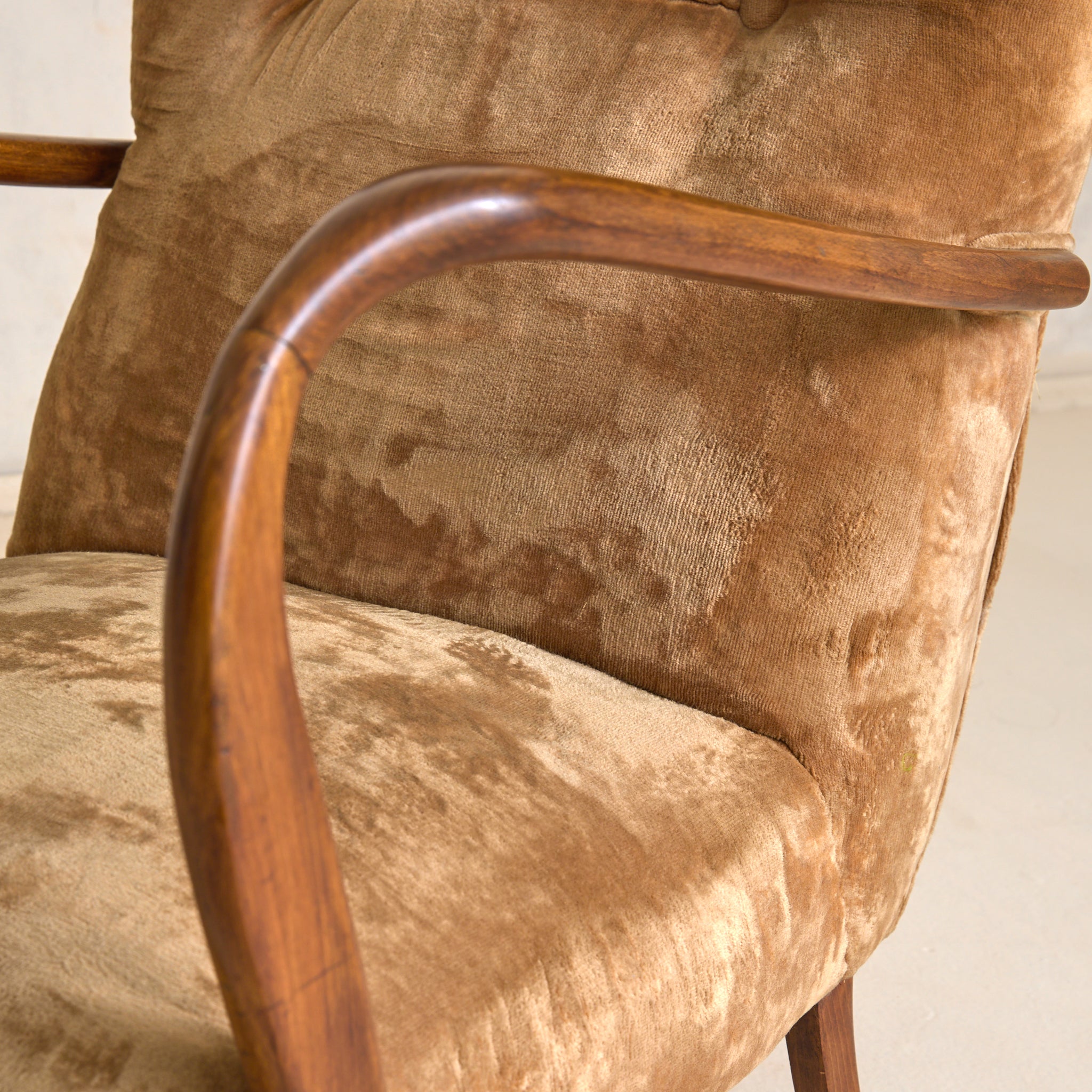 Italian Wood + Camel Velvet Armchair, 1960s - 2 Available