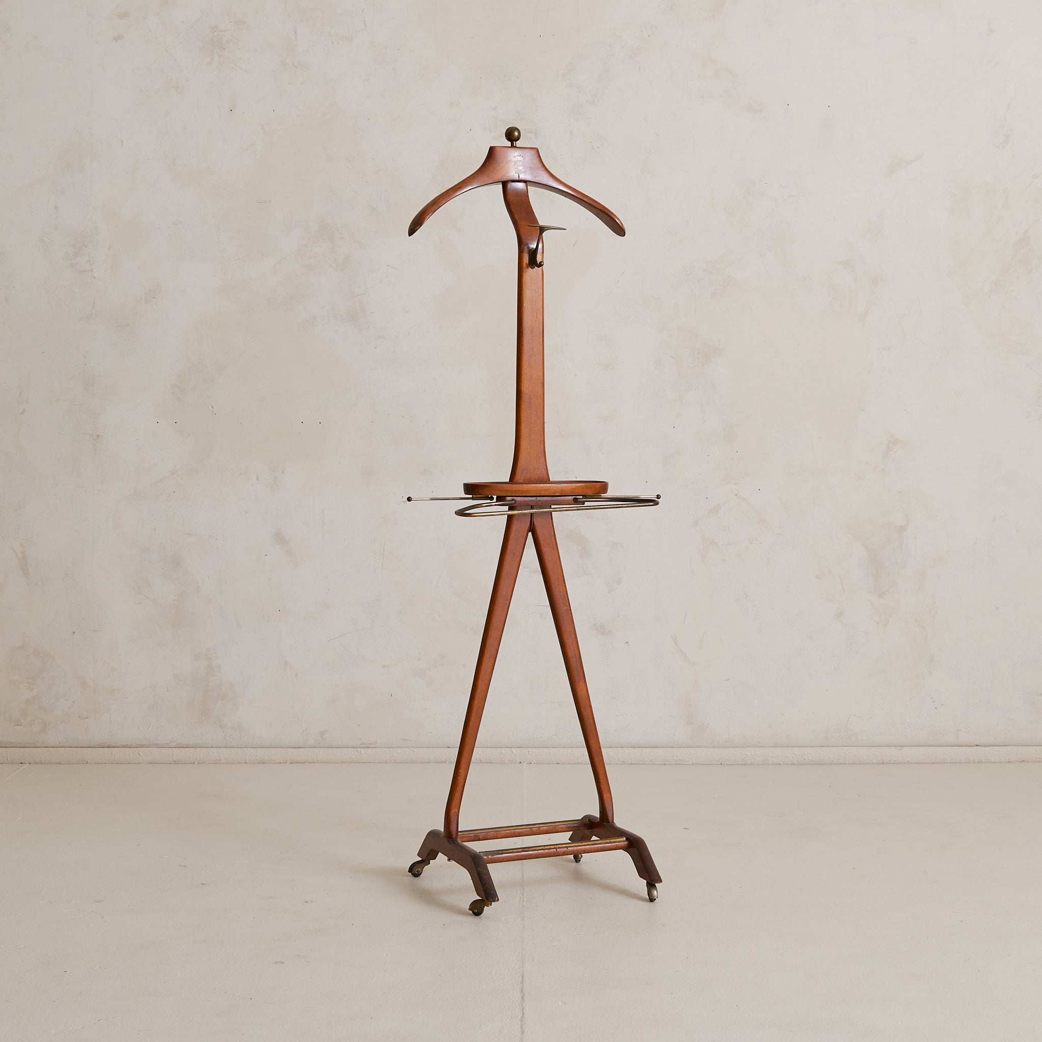 Italian Wood Valet Stand on Casters Attributed to Ico Parisi for Fratelli Reguitti, 1950s