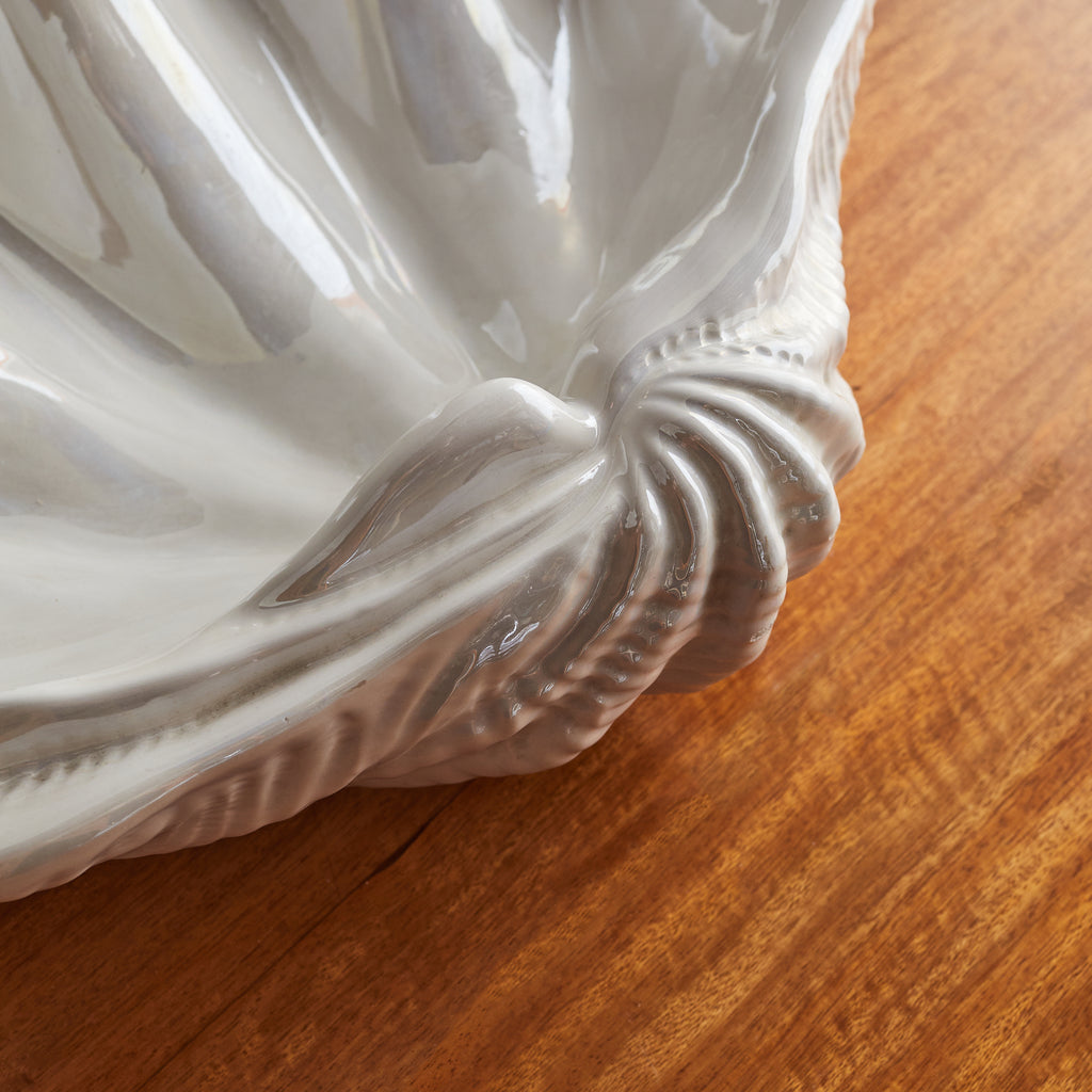 Large French Ivory Ceramic Shell Bowl, 1970s