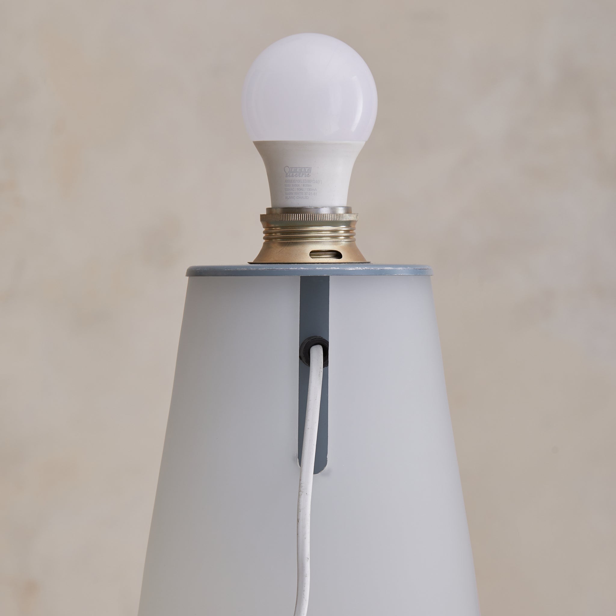When lit, the conical shade casts a warm, diffused glow. Style on a console or nightstand, or as a playful statement on a large desk.