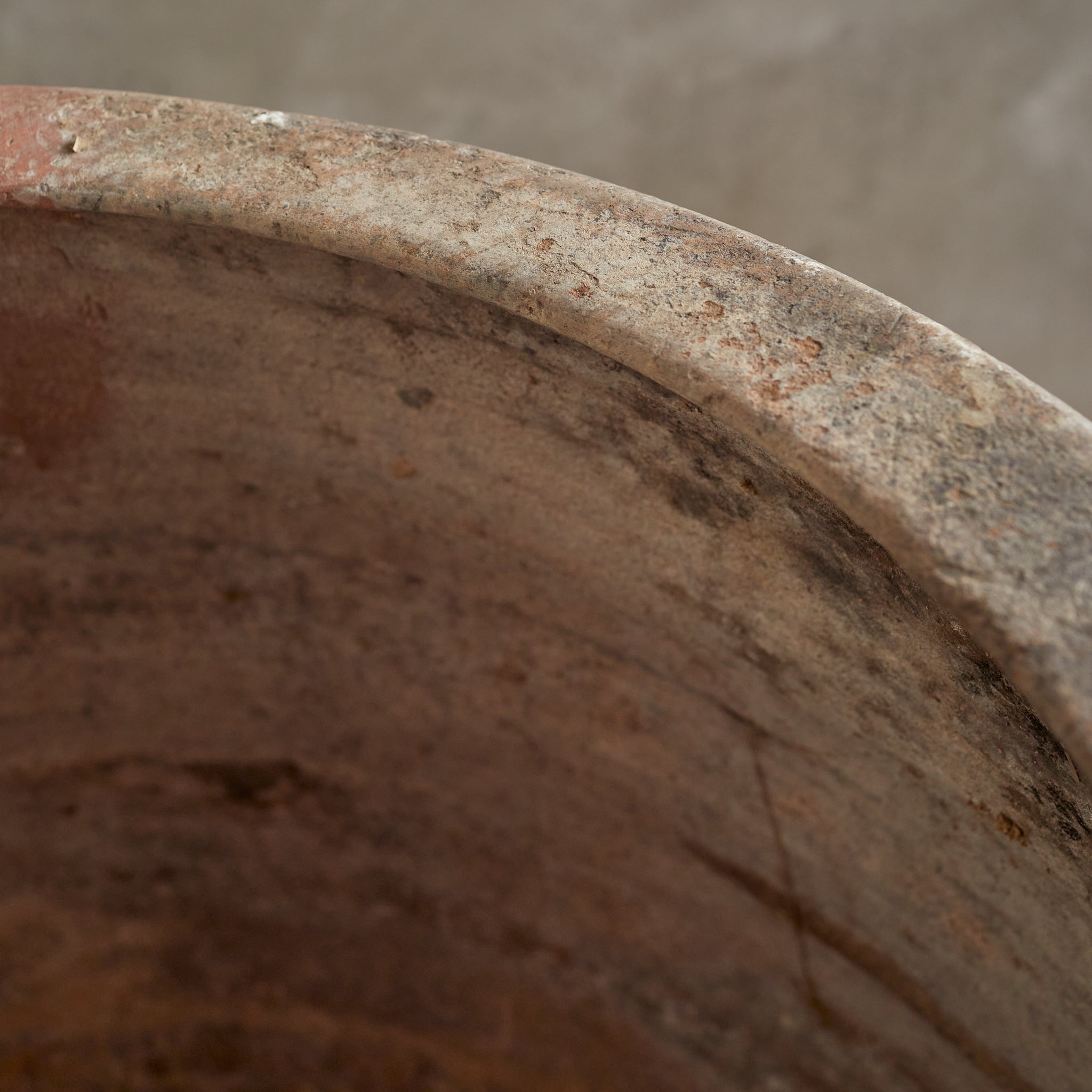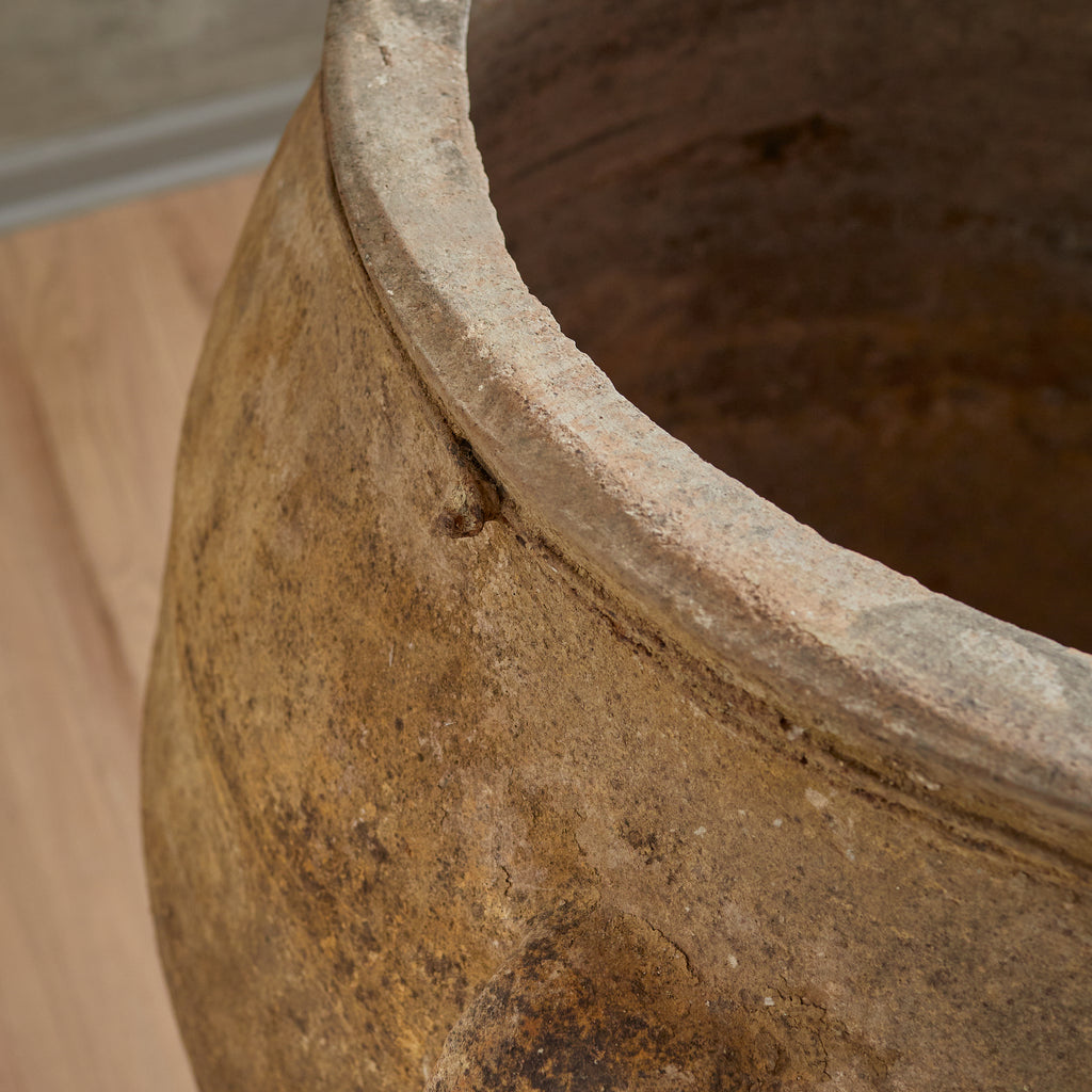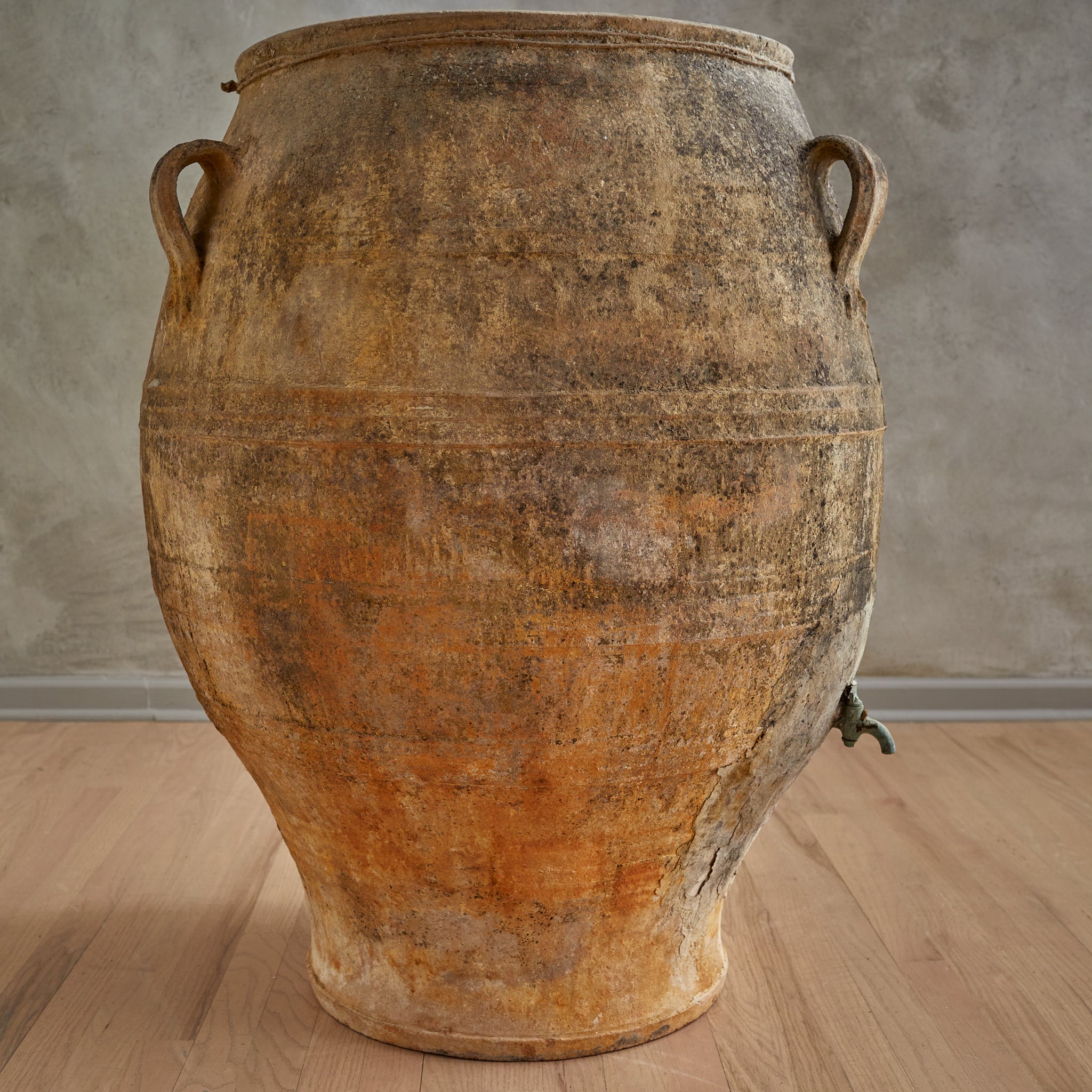 A monumental antique Turkish Olive Jar featuring layers of beautiful patina and age, reflective of its time spent as a utilitarian vessel for the storage of olive oil and olives in the Mediterranean. This can be used indoors or outdoors and brings an amazing sense of history + earth with it. Patina can range from mostly white wash to mossy.
