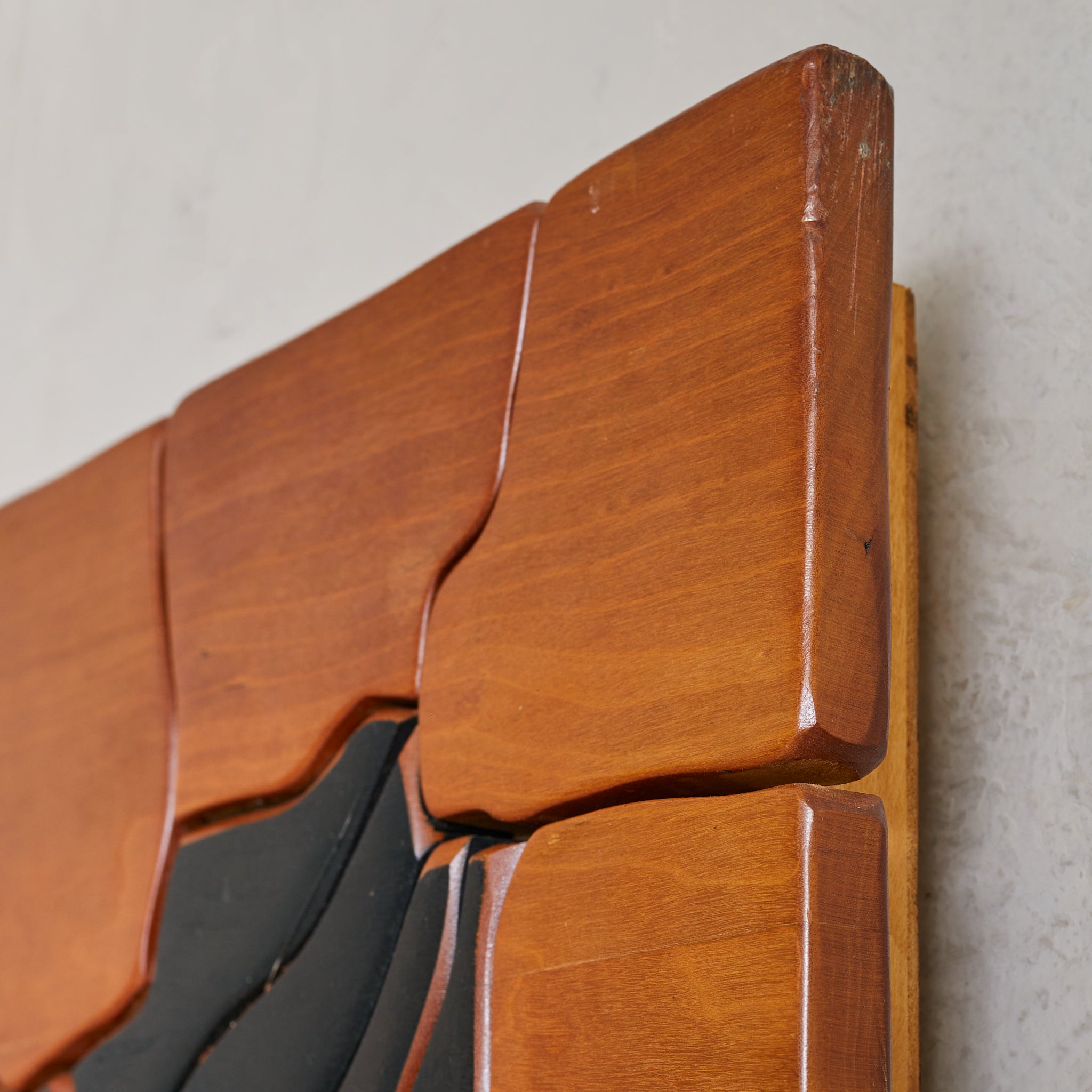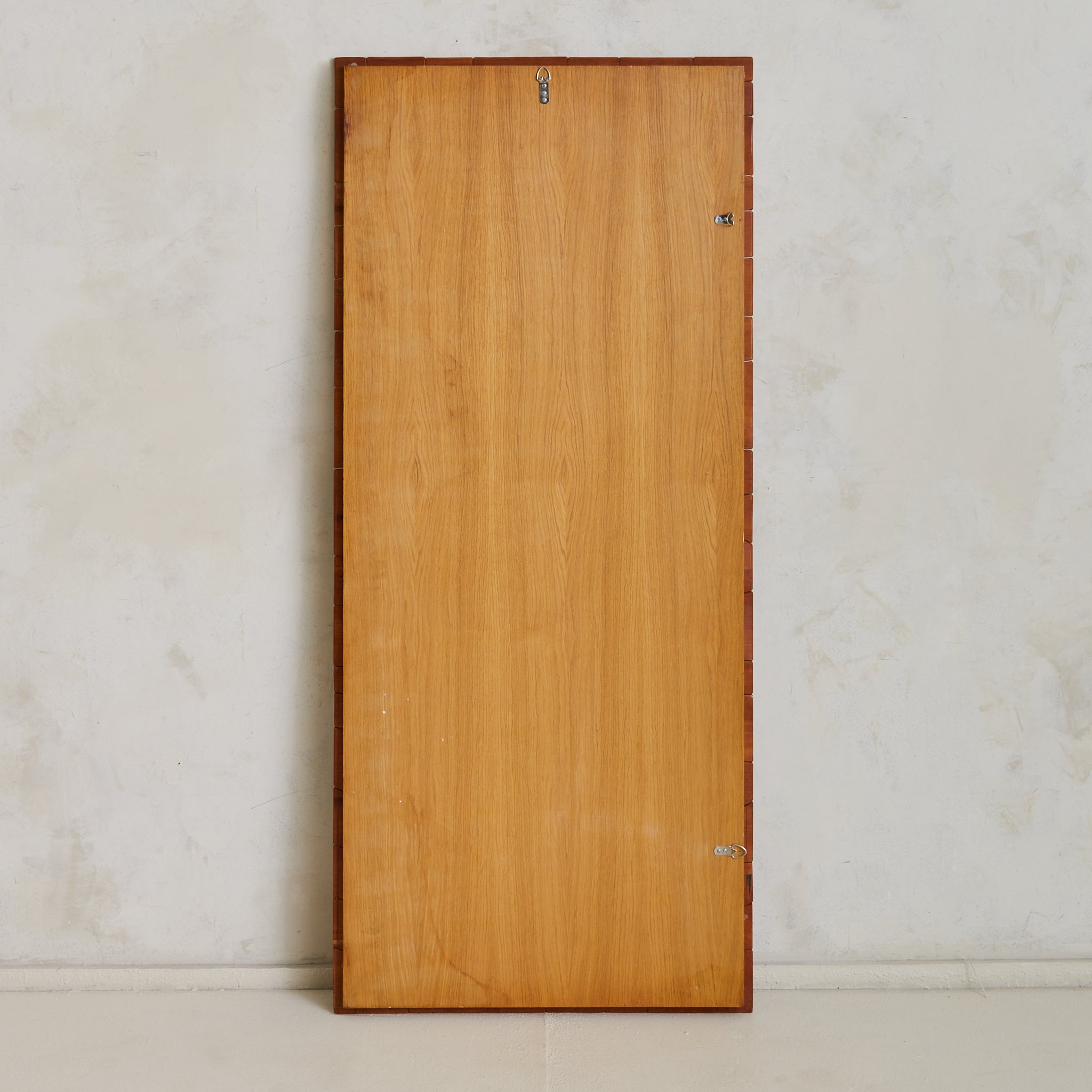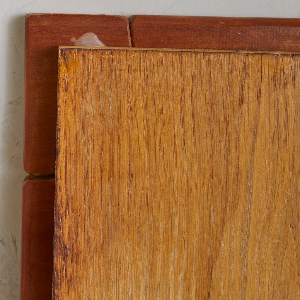 A monumental wall sculpture by Lucien Bénière, carved from an array of richly toned woods and standing over five feet in height. The surface forms a rhythmic collage of planes and textures—each segment individually articulated, yet unified in a quiet, meditative composition. Organic curves meet sharp delineations, inviting contemplation not only of form, but of the living history embedded in grain and gesture.
