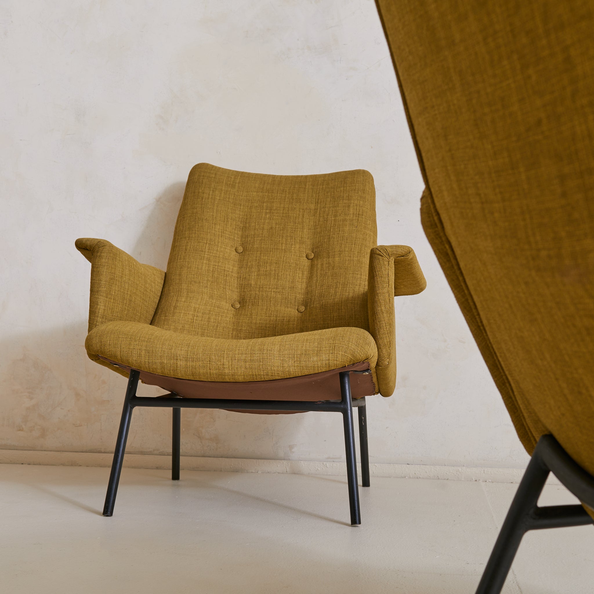 The iconic ‘SK660’ armchair was designed by Pierre Guariche for the esteemed French manufacturer Steiner in 1953. Capturing the spirit of postwar modernism, this piece features a tubular frame in black-lacquered metal—light in appearance, yet structurally bold.