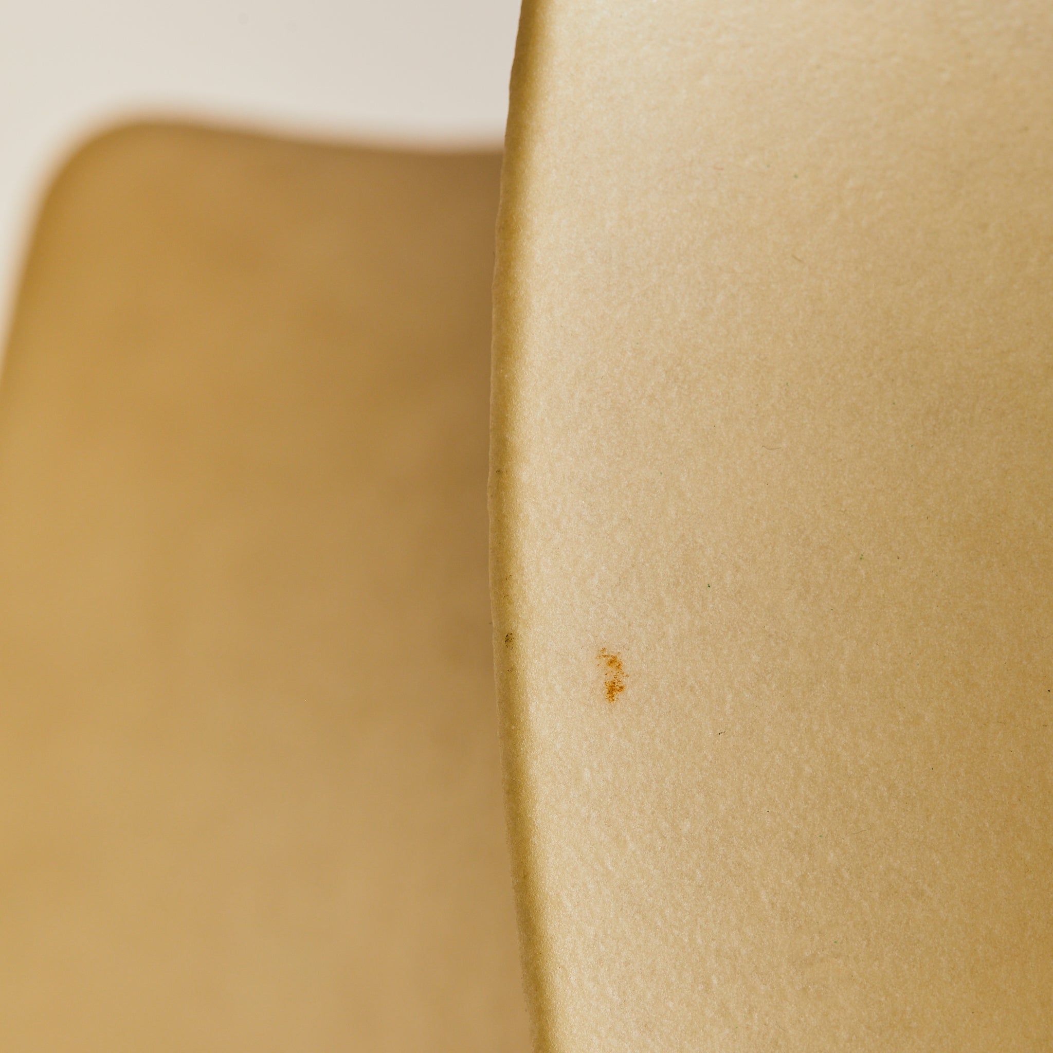 A small ‘Viscontea’ cocoon pendant light designed by Achille & Pier Giacomo Castiglioni for Flos in 1962. This captivating fixture features an enameled steel frame and a “cocoon” sprayed resin shade, mimicking the look of goatskin parchment. When lit, this iconic modernist piece emits an ambient glow.