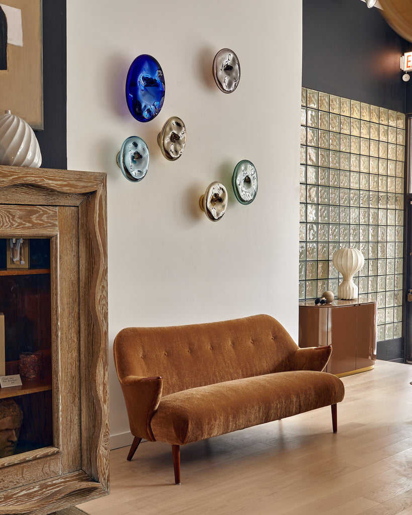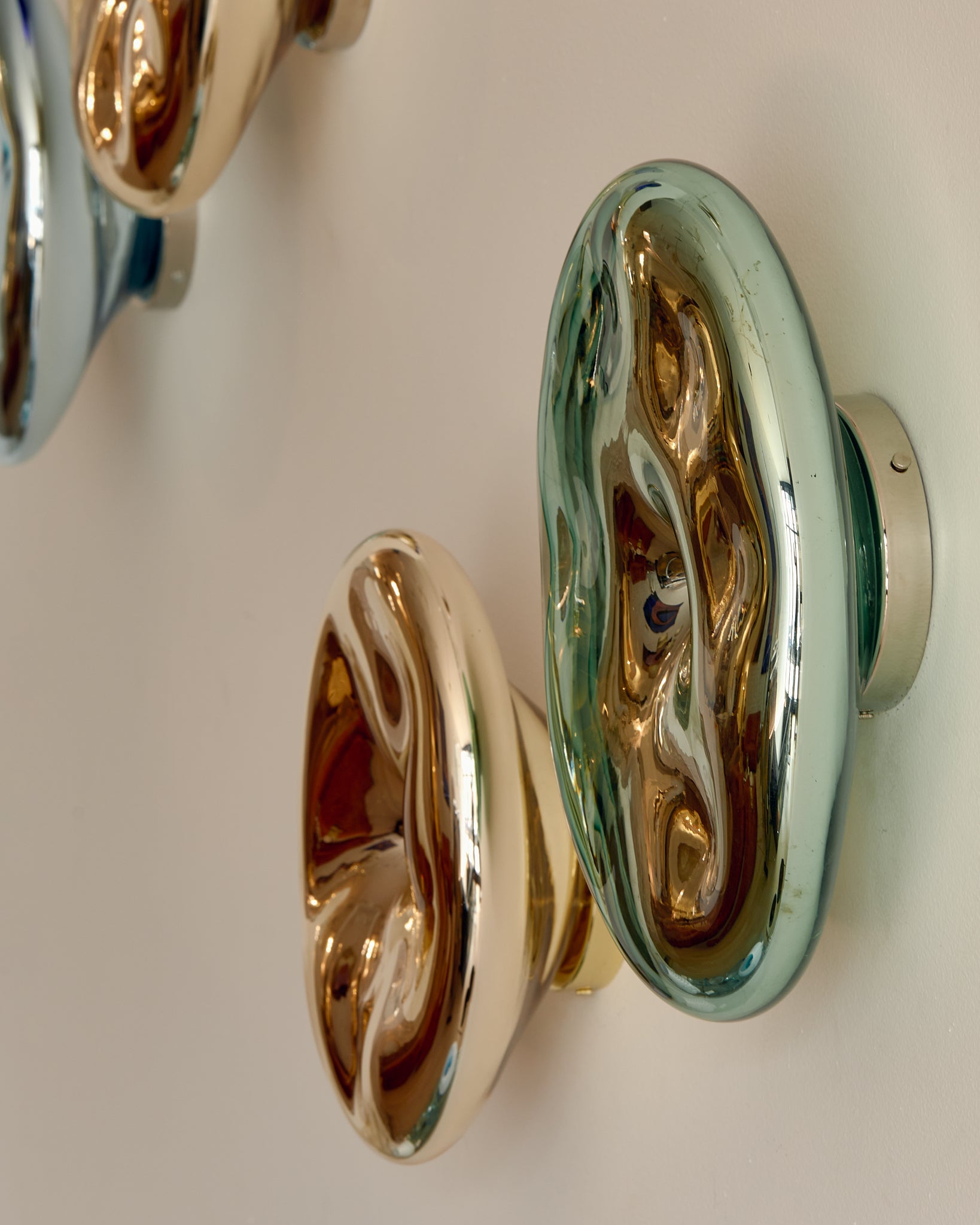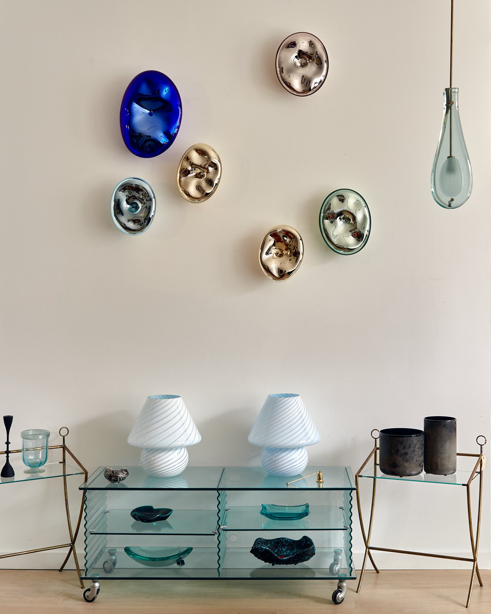 Reflective and compelling, the Soul wall sculpture is a tactile expression of meticulous individuality. Hand-shaped and blown out of Murano glass, each work is entirely idiosyncratic with an interior that is mirrored to distort one’s perspective, evoking a familiar sense of ambiguity and wonder.