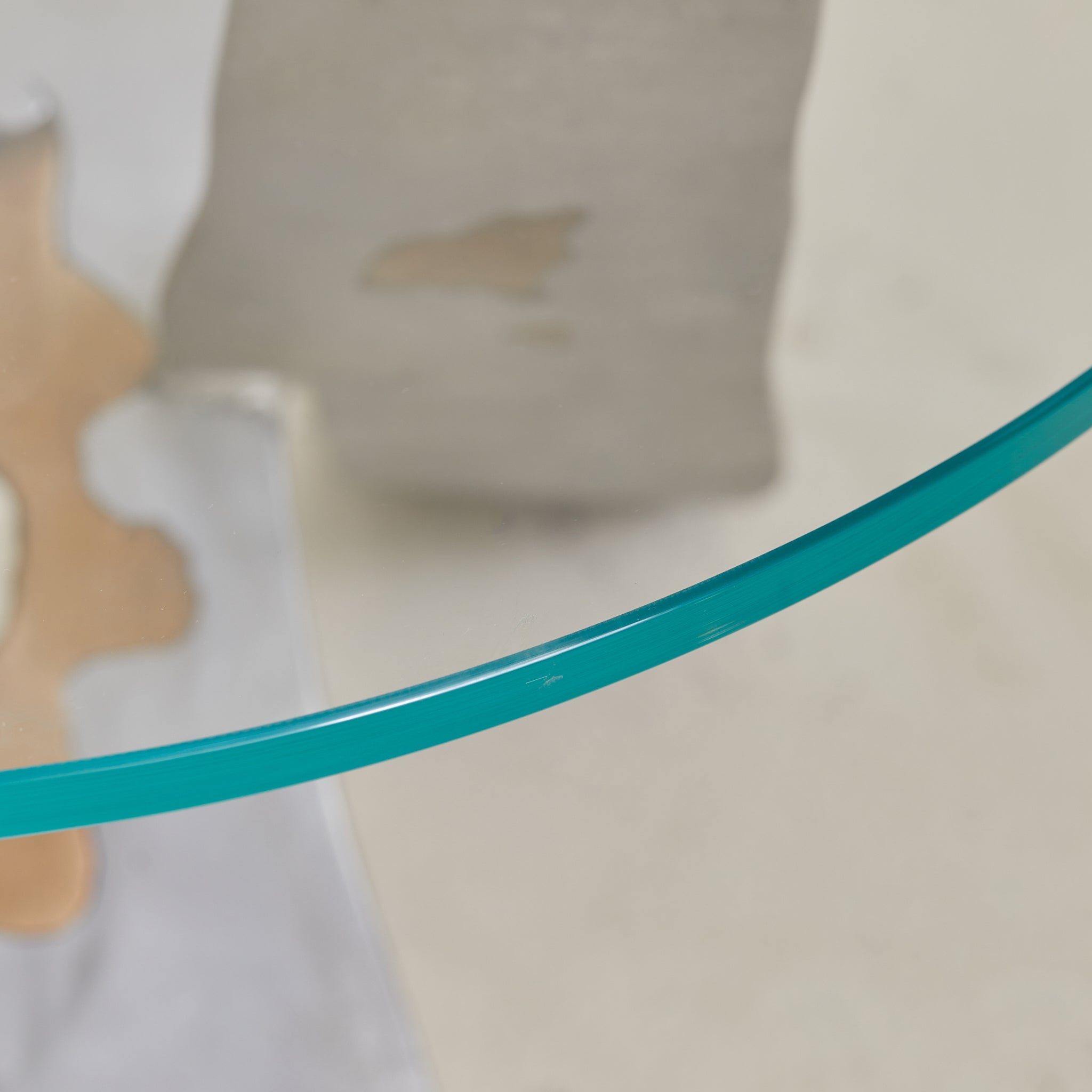 An oval glass top floats above, revealing the interplay of texture and tone beneath. Rare, biomorphic, and unmistakably rooted in the expressive materiality of Marshall’s studio practice.