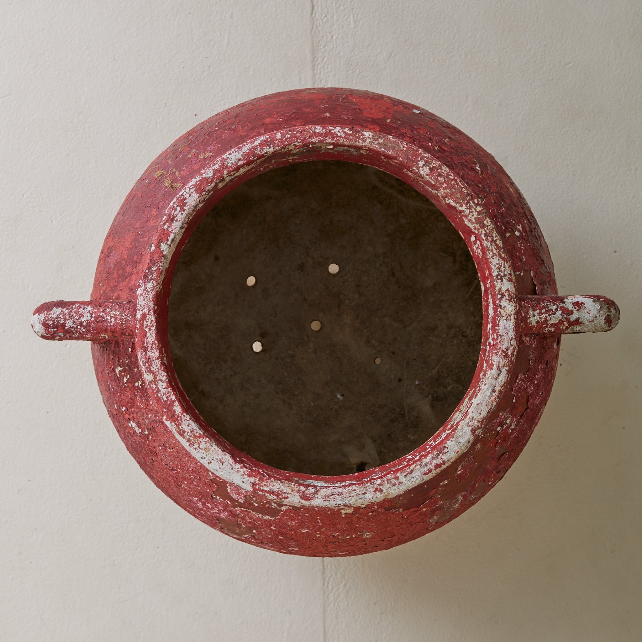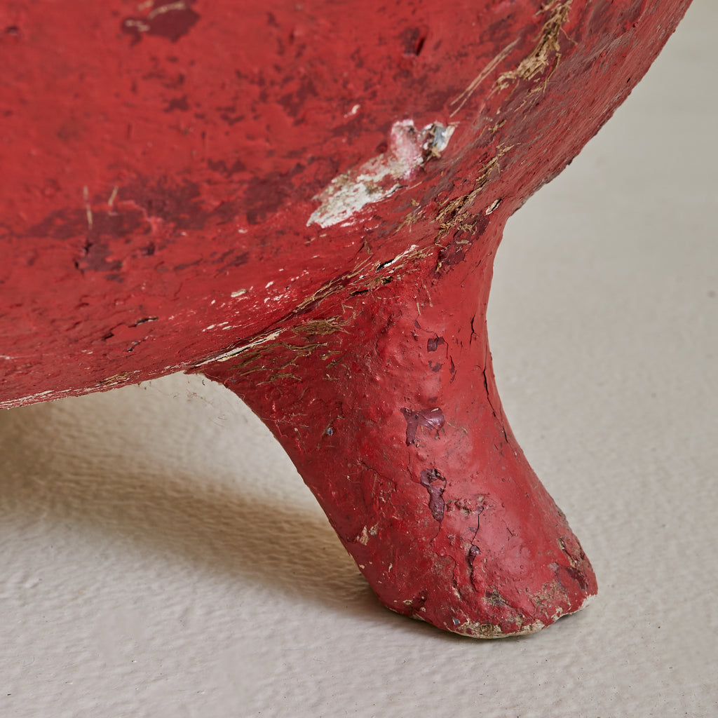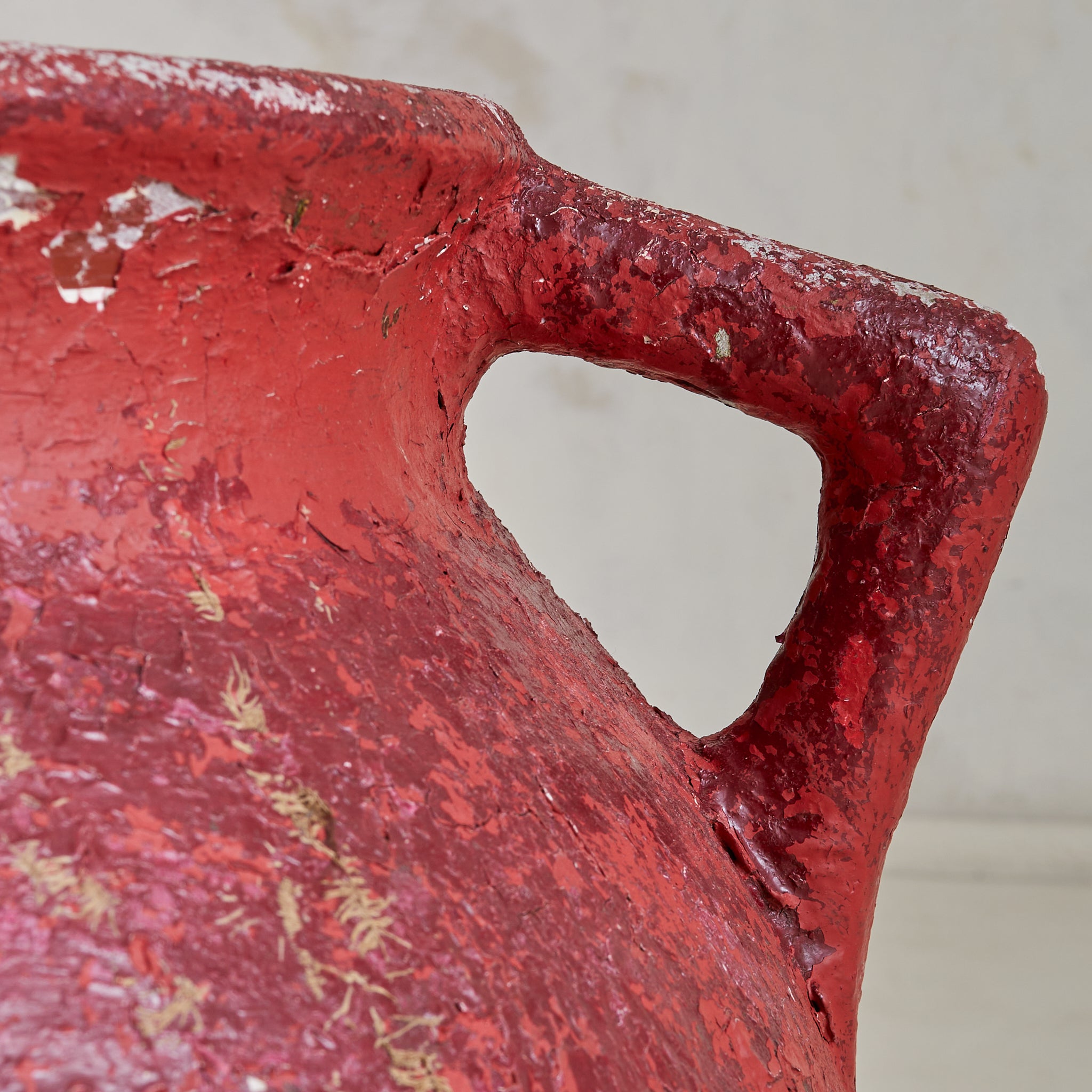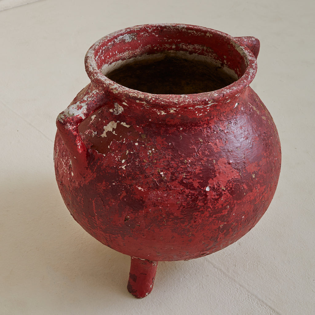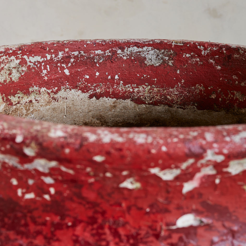 The ‘Marmite’ concrete planter was designed by the renowned Swiss designer Willy Guhl for Eternit AG in the 1950s. This rare design features a distinctive cauldron shape with two handles, supported by three angled feet. It has aged beautifully over time, displaying an original patina that adds character to the red composition. Whether placed indoors or outdoors, this piece serves as both a functional planter and a stunning sculptural element.