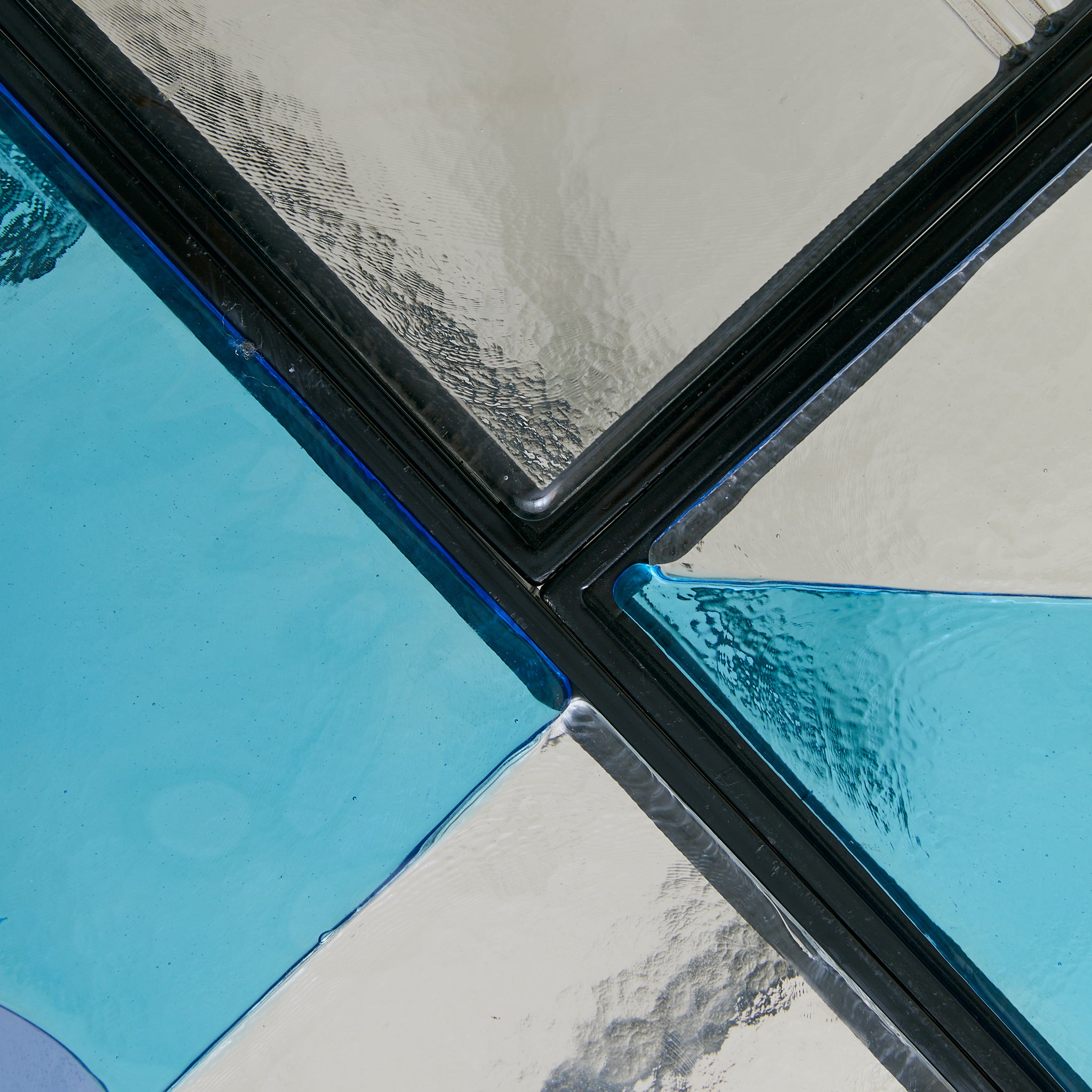 Each top is distinct: overlapping ovals, a half-moon arc, and a diagonal split—motifs that animate the simplicity of the metal frames. Intimate in scale, the tables can be clustered together or placed individually, their glass tops serving as luminous focal points.