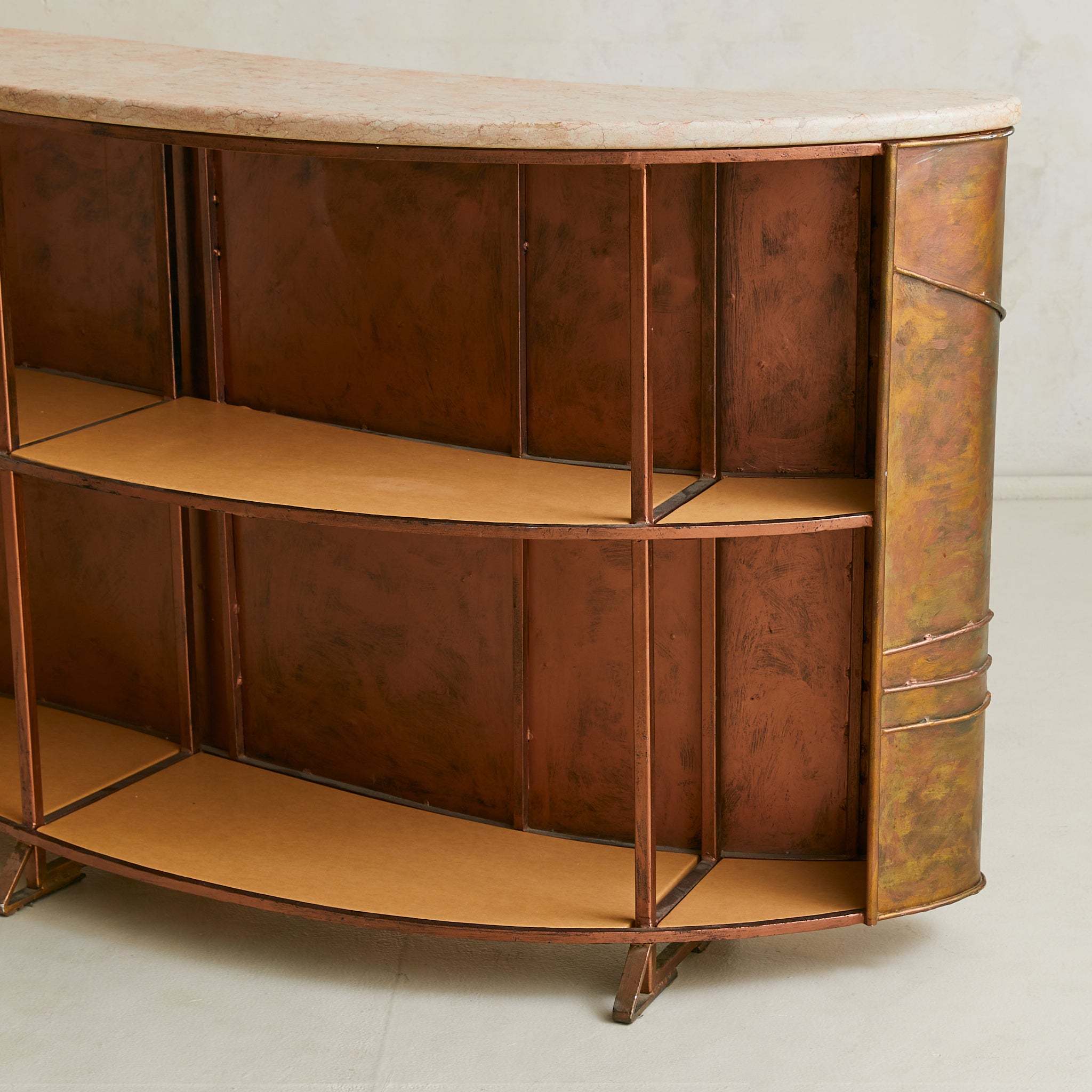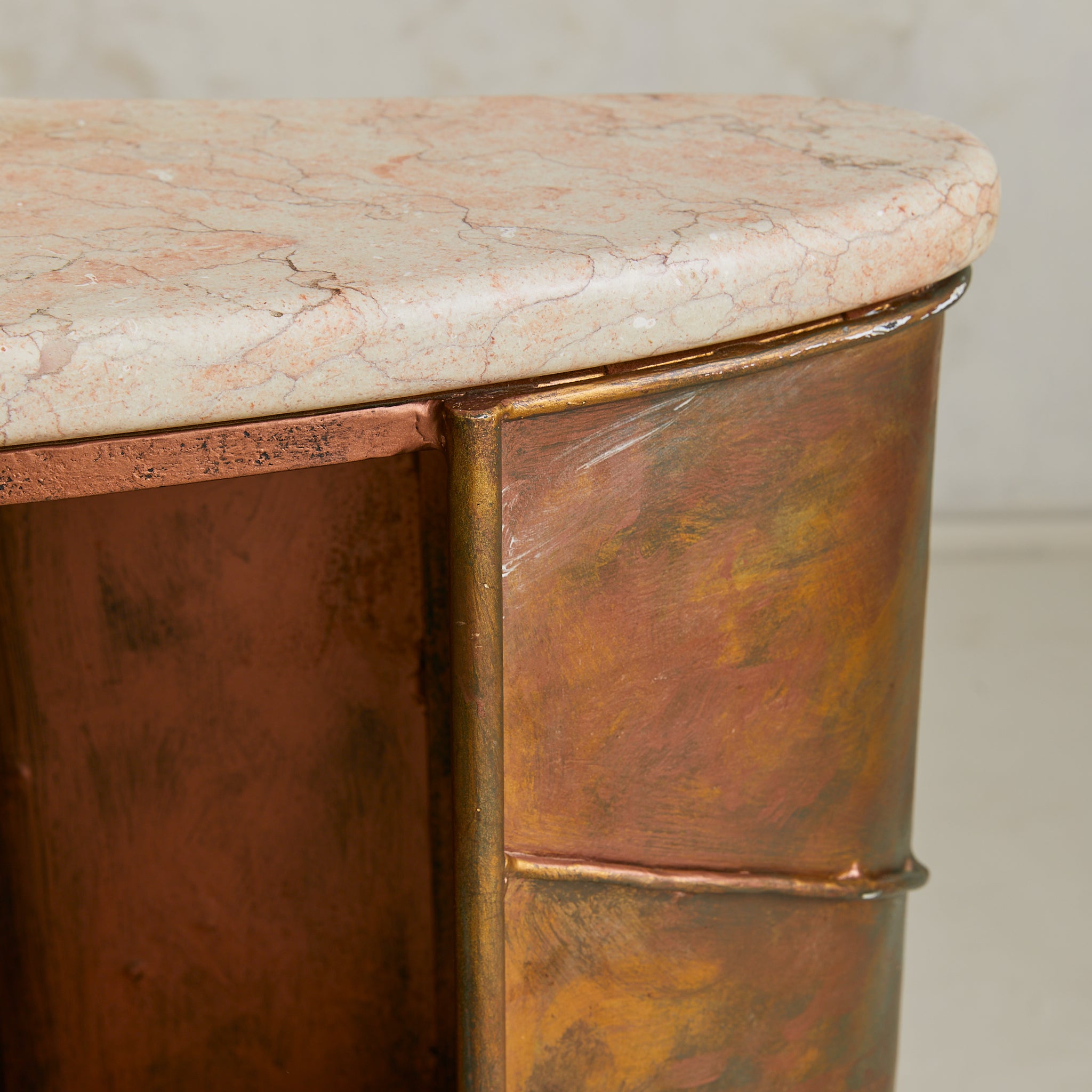 Vintage Custom Italian Metal Bar Cabinet with Blush Marble Top