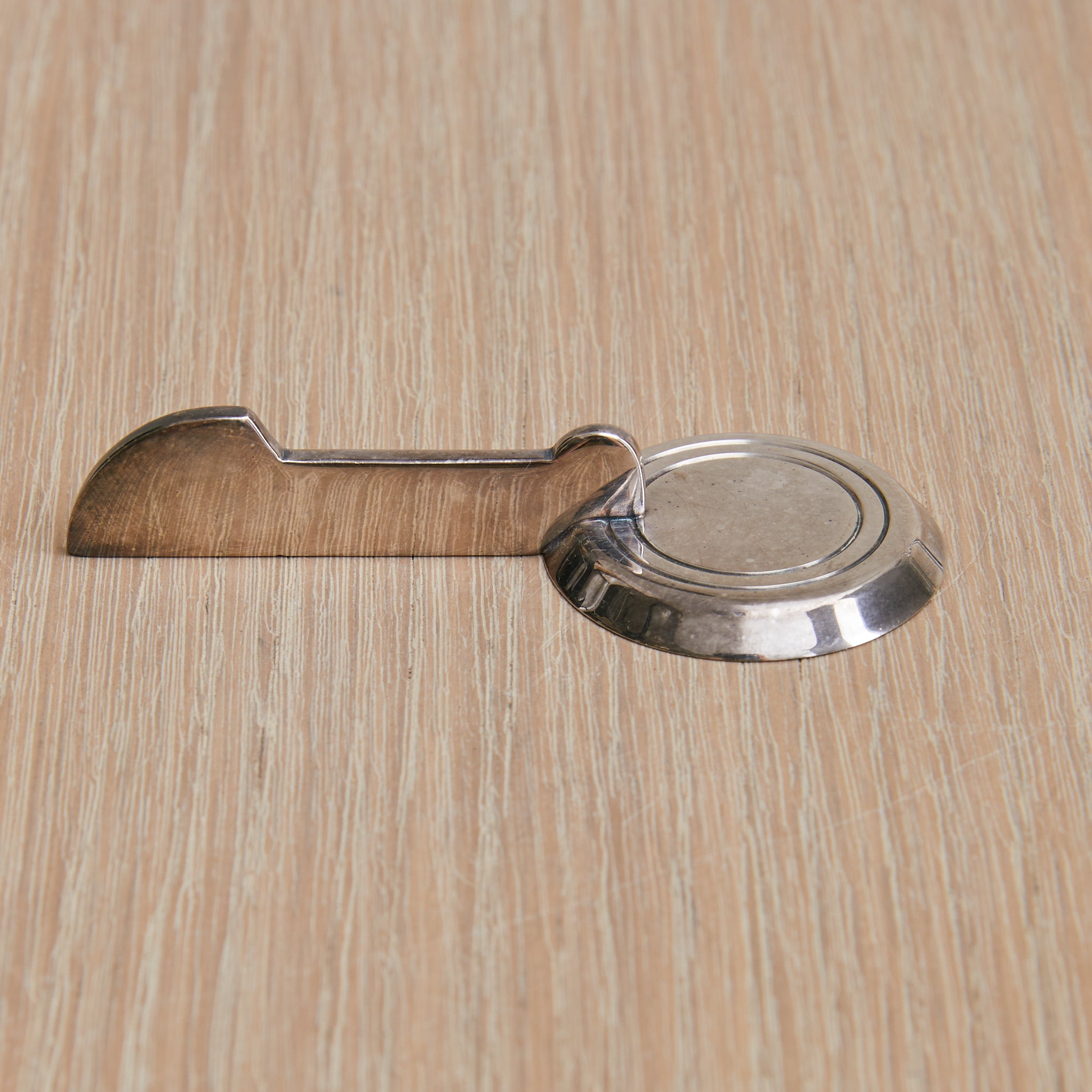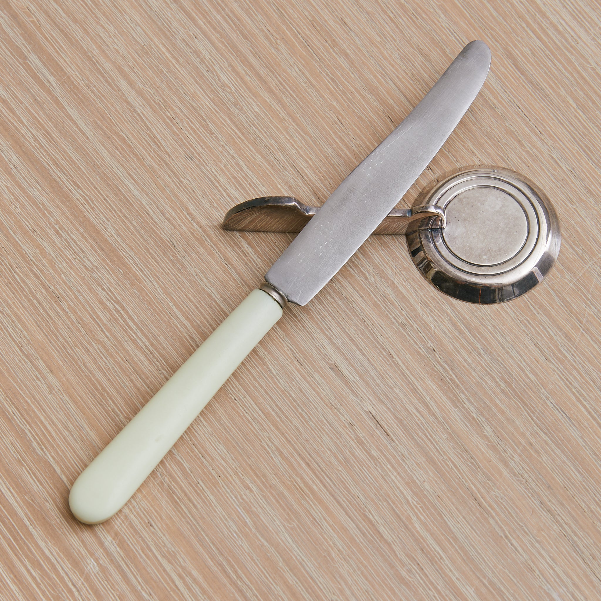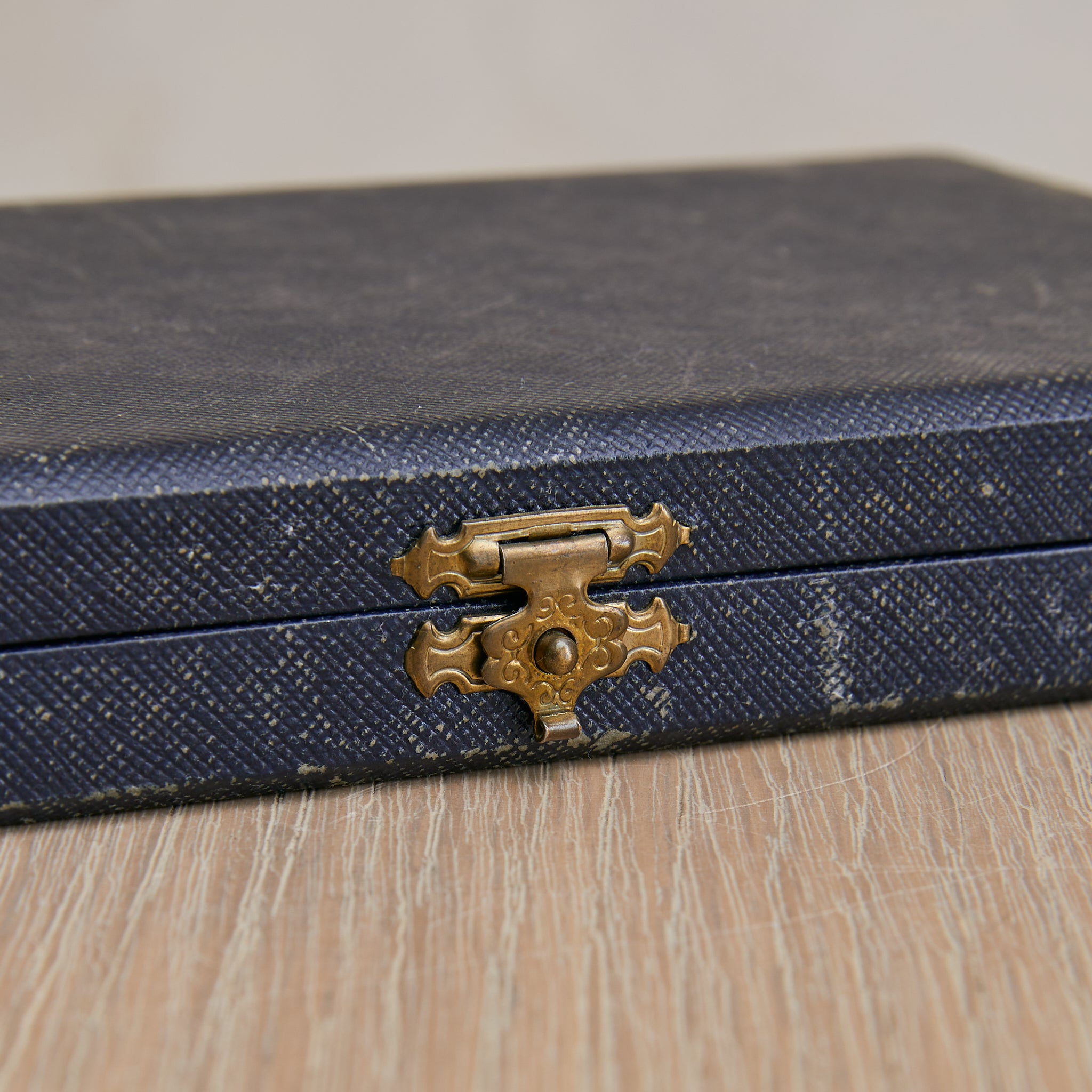 A boxed set of six silver-plated knife rests, sourced in the South of France. Each rest features a rounded, stepped base with an arched support bar—minimal and classically French. Presented in the original Le Chardon case lined in deep sapphire satin.