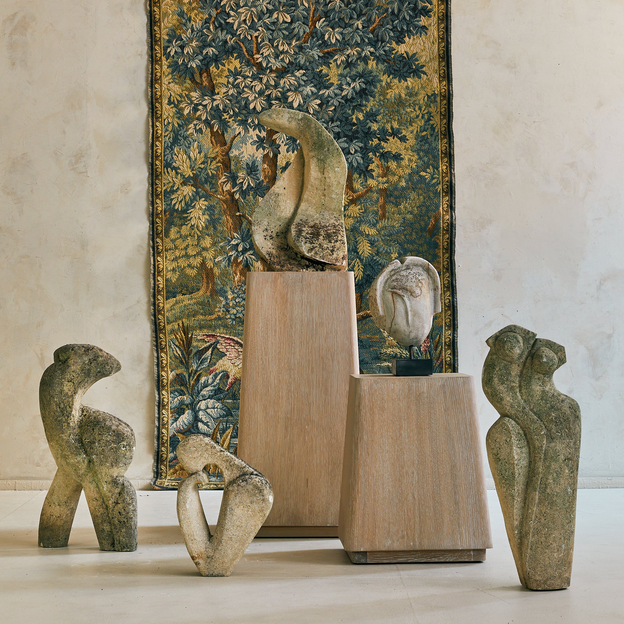 Each piece is hand-carved from pierre de Castries, a soft limestone native to southern France. The surface is raw and tactile, revealing both time and touch. The figures—stylized, upright, and elemental—echo the human body the artist spent his life healing.