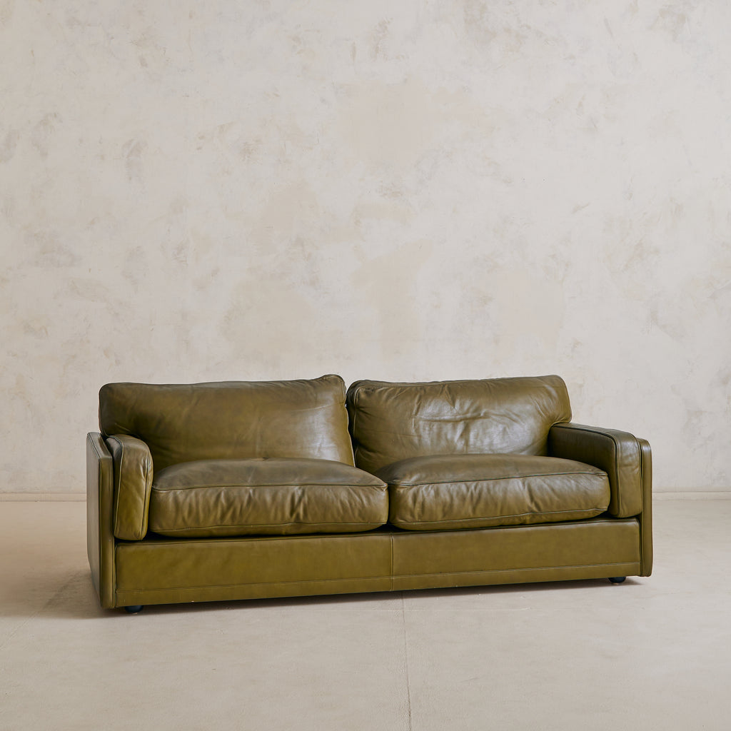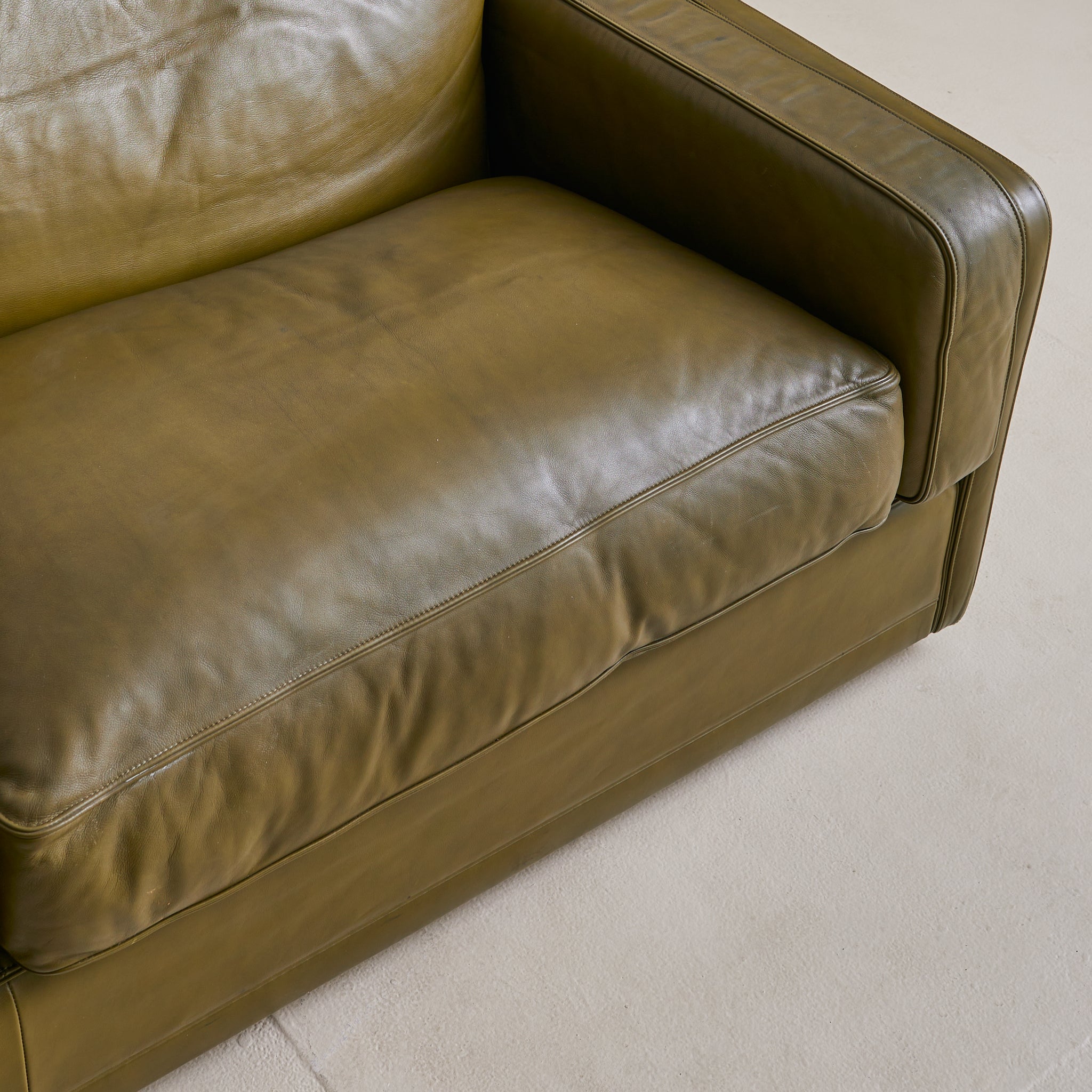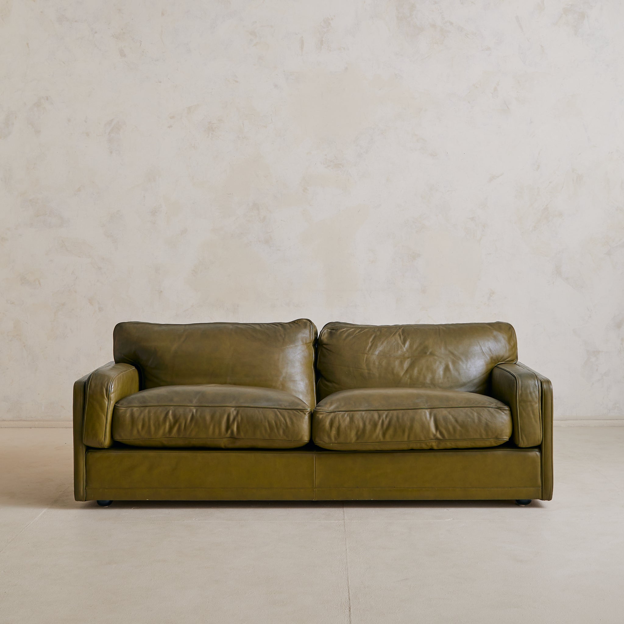 Vintage Italian ‘Socrates’ Olive Leather Sofa by Poltrona Frau